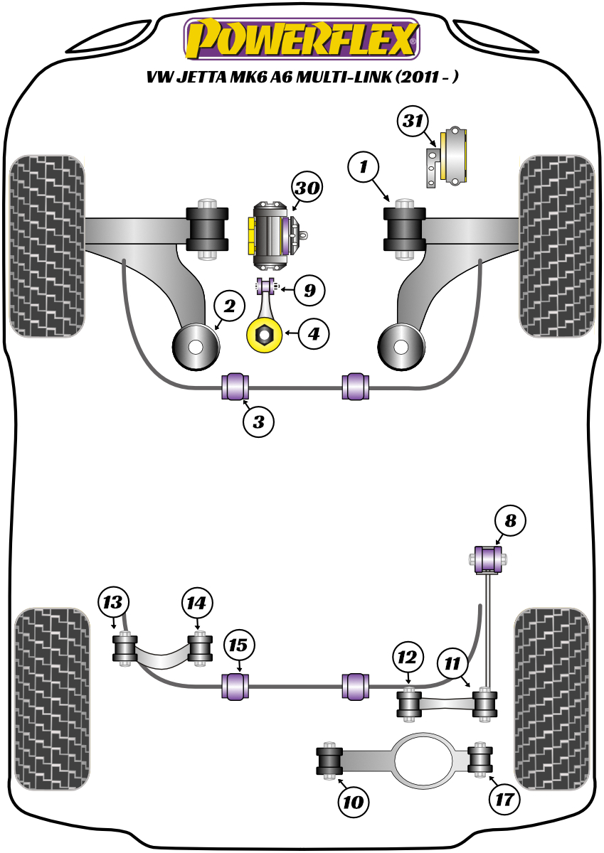Hátsó alsó nyomrúd külső persely Powerflex poliuretán szilent Road Series Volkswagen Jetta Models Jetta MK6 A6 (2011 - 2018) Jetta MK6 A6 Multi-Link (2011 - 2018) PFR85-511