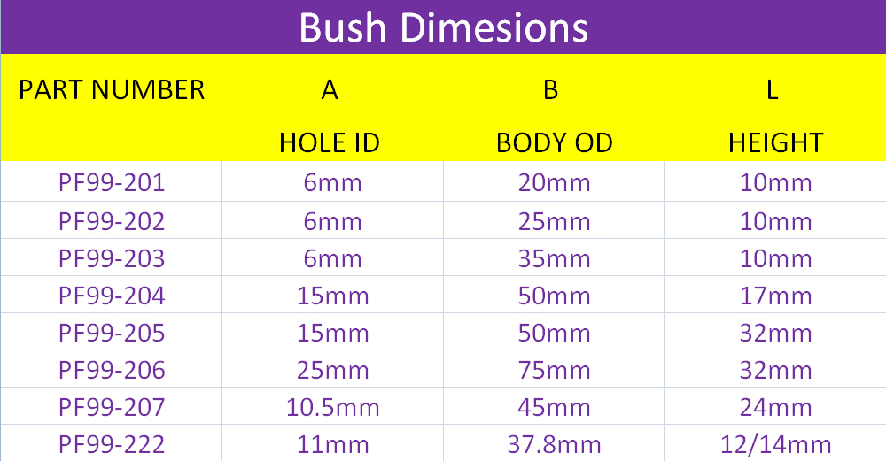 200 serijos plovimo įvorė Powerflex poliuretano įvorė Road Series Universal Bushes Washers PF99-204