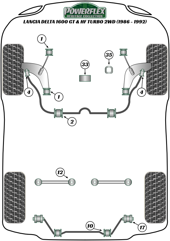 Steering Rack Mounting Bush (Right) Powerflex Polyurethane Bush Heritage Collection Lancia Delta 1600 GT & HF Turbo 2WD (1986-1992) PFF30-333H