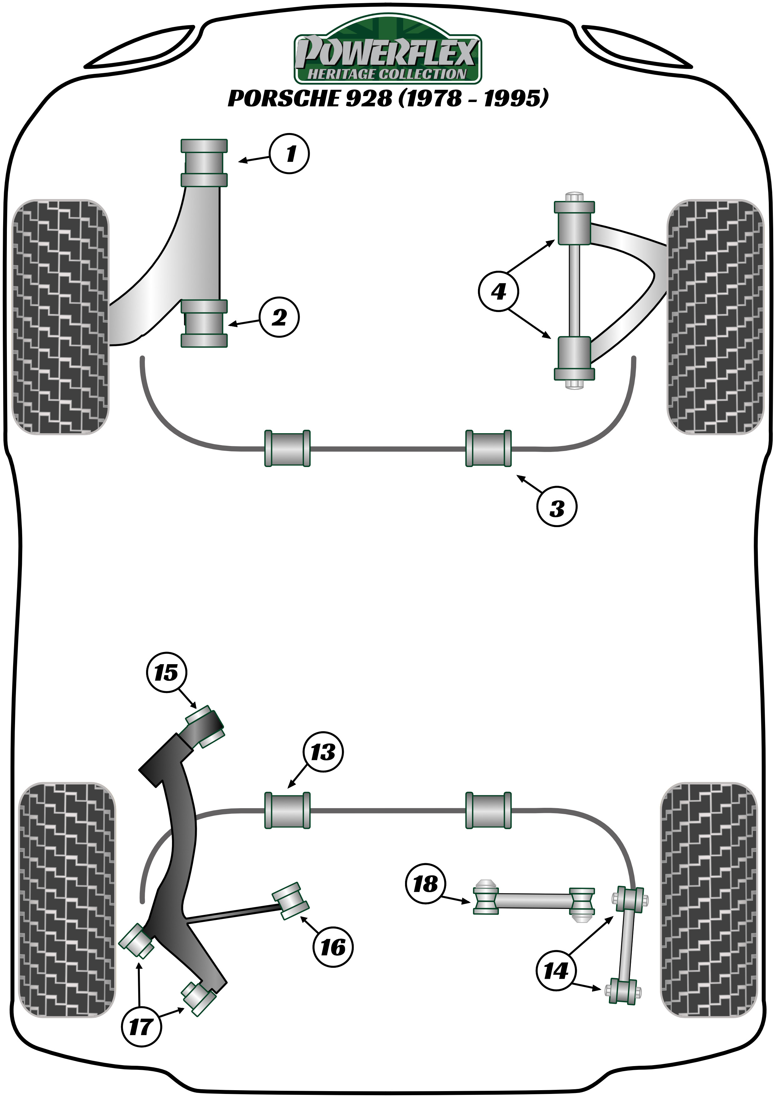 Rear Rocker Arm inc. Bush Powerflex Polyurethane Bush Heritage Collection Porsche 928 (1978-1995) PFR57-715H