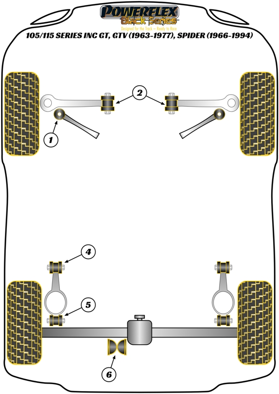 Rear T-Bar to Diff Mounting Bush Powerflex Polyurethane Bush Black Series Alfa Romeo 105/115 Guilia, GT, GTA, GTV (1963-1977) PFR1-305BLK