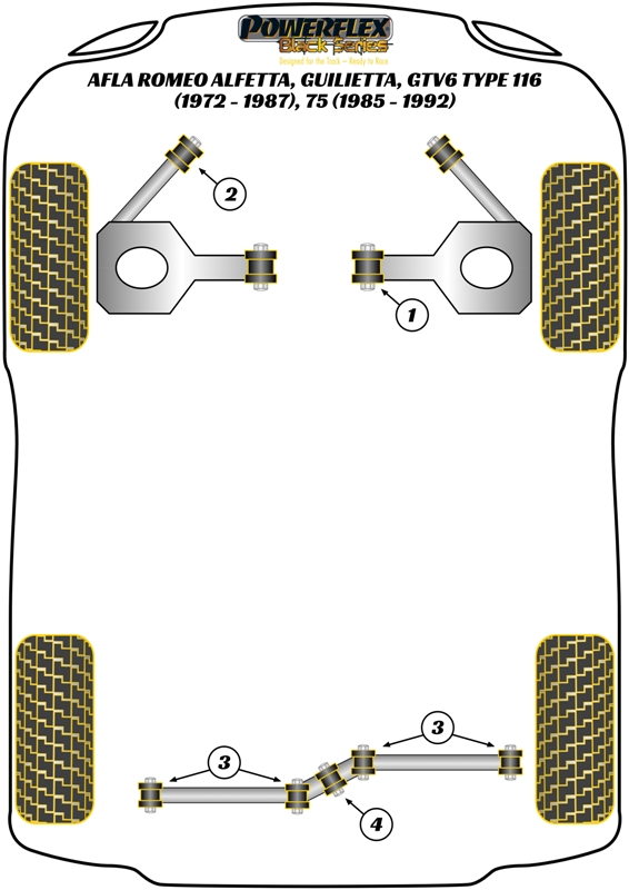 Rear Watts Linkage Arm Bush Powerflex Polyurethane Bush Black Series Alfa Romeo Alfetta, Giulietta, GTV6 Type 116 (1972-1987), 75 (1985-1992) PFR1-210BLK