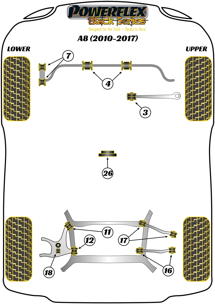 Rear Lower Arm Rear Bush Powerflex Polyurethane Bush Black Series Audi A8 / S8 A8 / S8 D4 (2010 - 2017) A8 (2010 - 2017) PFR3-712BLK