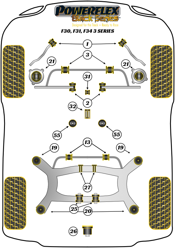 Shifter Arm Rear Bush Powerflex Polyurethane Bush Black Series BMW 3 Series F30, F31, F34, F80 (2011 - 2018) F3* Sedan / Touring / GT (2011 - 2018) PFF5-4632BLK
