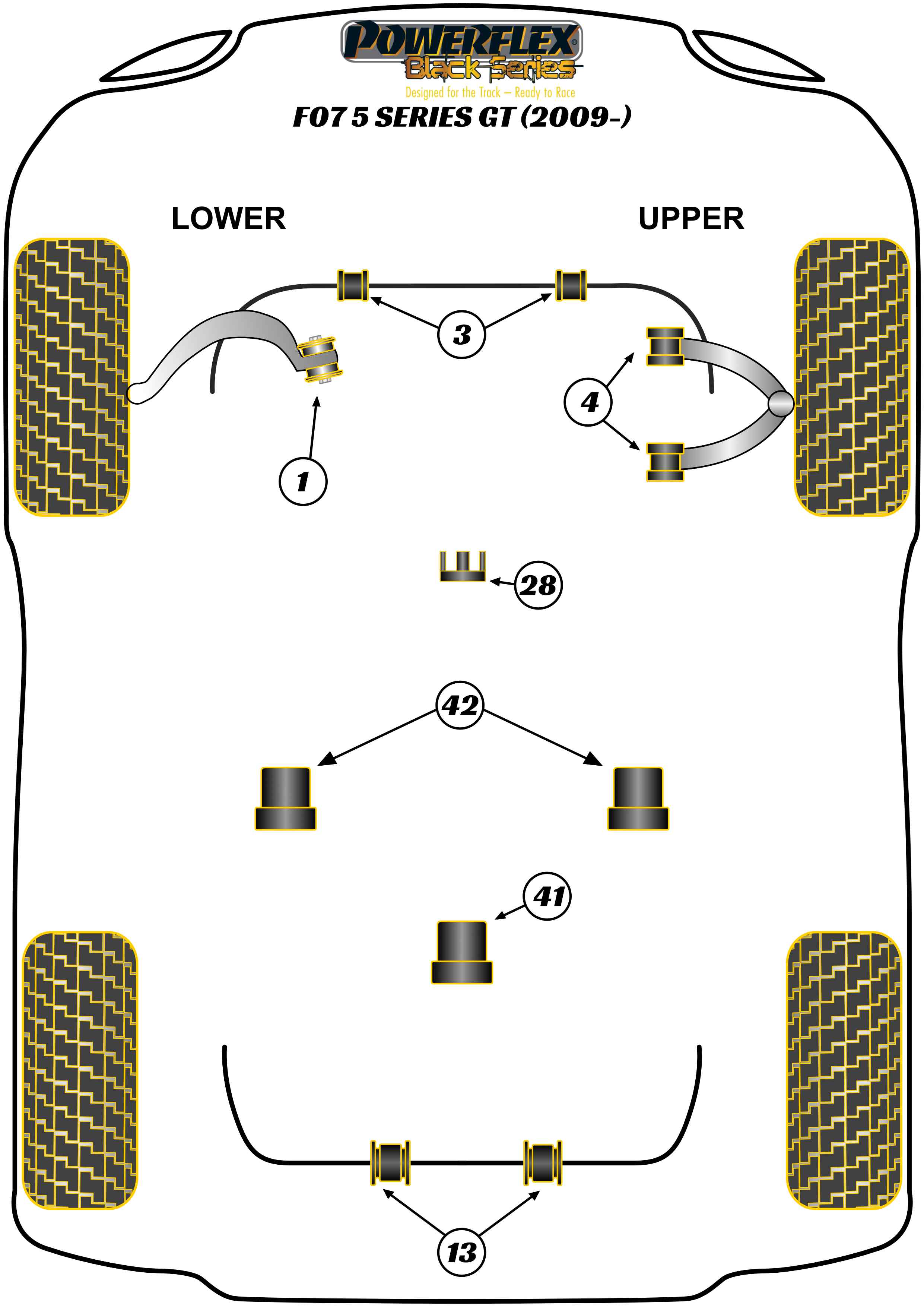 Front Anti Roll Bar Mounting Bush Powerflex Polyurethane Bush Black Series BMW 5 Series F07 GT (2009 - 2016) PFF5-1404BLK