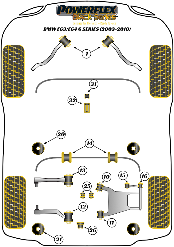 Rear Anti Roll Bar Bush 14.5mm Powerflex Polyurethane Bush Black Series BMW 6 Series E63/E64 (2003 - 2010) PFR5-4609-14.5BLK