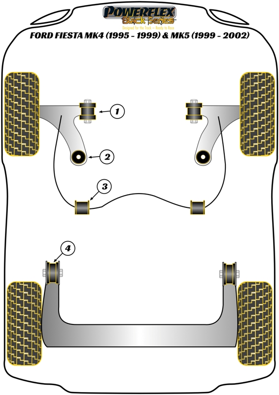 Front Anti Roll Bar Bush 16mm Powerflex Polyurethane Bush Black Series Ford Fiesta Models Fiesta Mk4 (1995 - 1999) & Mk5 (1999 - 2002) PFF19-603BLK