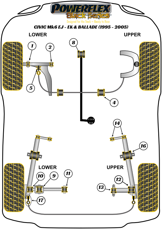 Rear Anti Roll Bar Link Bush Kit Powerflex Polyurethane Bush Black Series Honda Civic Models Civic Mk6 EJ-EK & Ballade (1995-2005) PFR25-111BLK