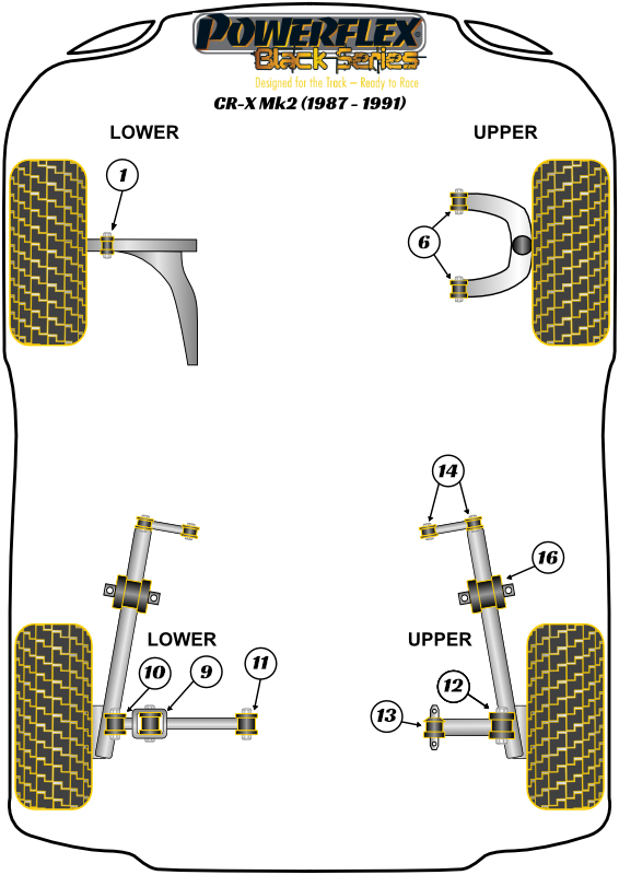 Rear Lower Arm Outer Bush 35mm Powerflex Polyurethane Bush Black Series Honda CR-X Models CR-X Mk2 (1987-1991) PFR42-610BLK