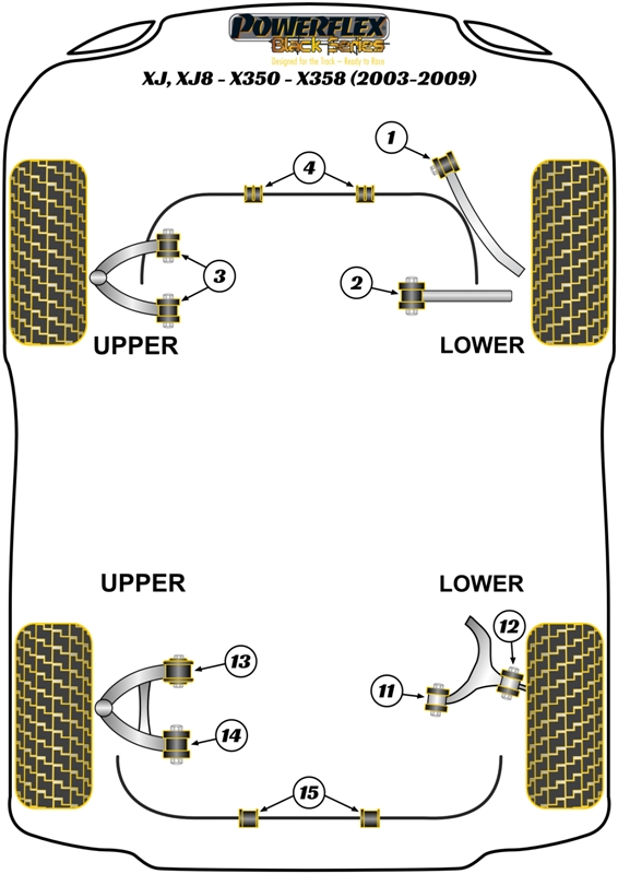Rear Lower Arm Inner Front Bush Powerflex Polyurethane Bush Black Series Jaguar (Daimler) XJ, XJ8 - X350 - X358 (2003 - 2009) PFR27-610BLK