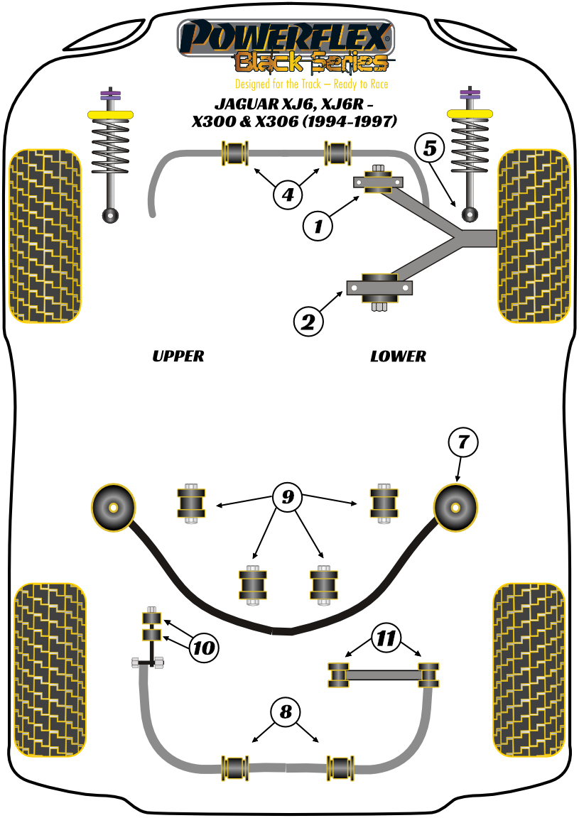 Front Lower Shock Mount Bush Powerflex Polyurethane Bush Black Series Jaguar (Daimler) XJ6, XJ6R - X300 & X306 (1994 - 1997) PFF27-403BLK