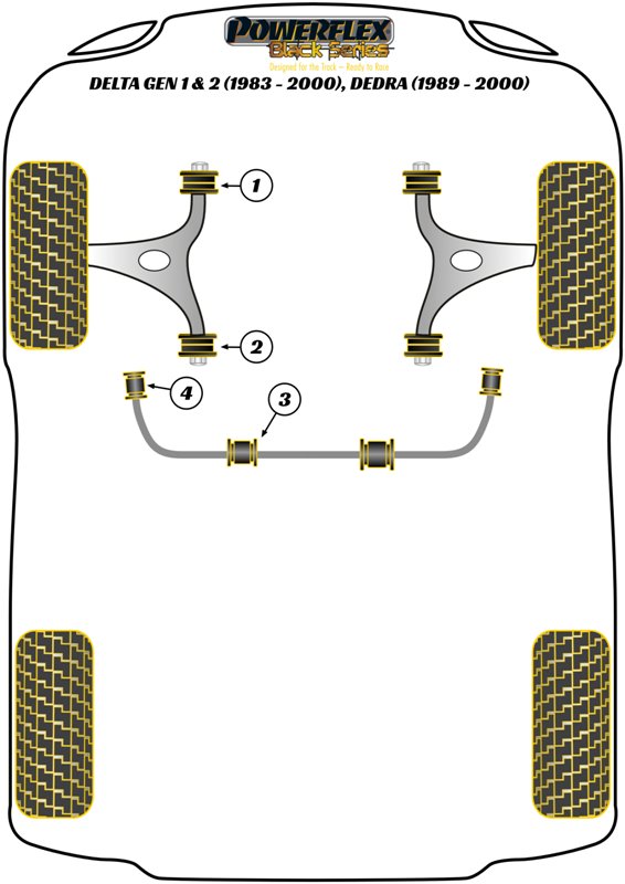 Front Lower Wishbone Front Bush Powerflex Polyurethane Bush Black Series Lancia Dedra inc Integrale (1989-1999) PFF1-801BLK
