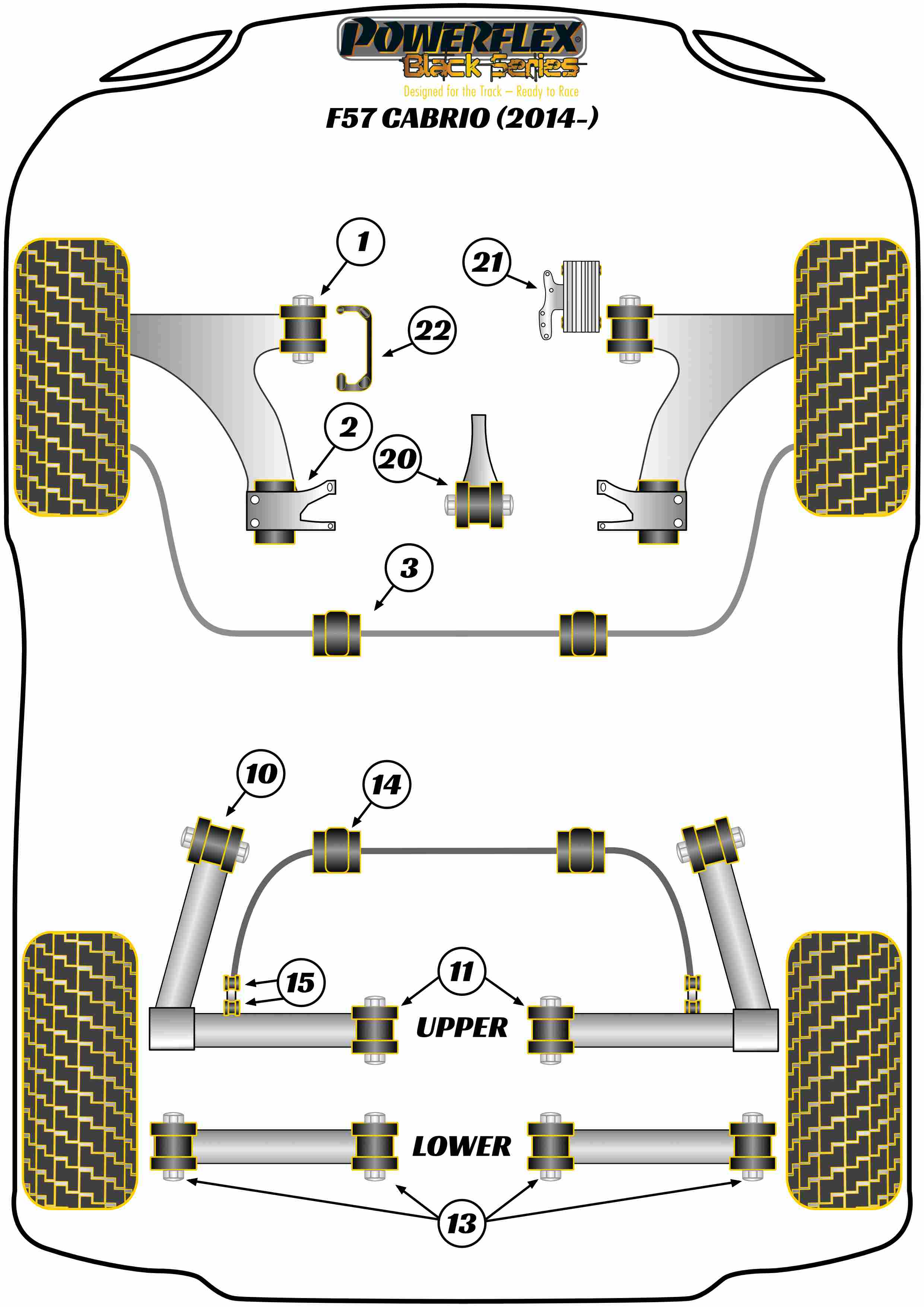 Rear Anti Roll Bar Bush 21.4mm Powerflex Polyurethane Bush Black Series Mini F57 Cabriolet (2014 - on) PFR5-1314-21.4BLK