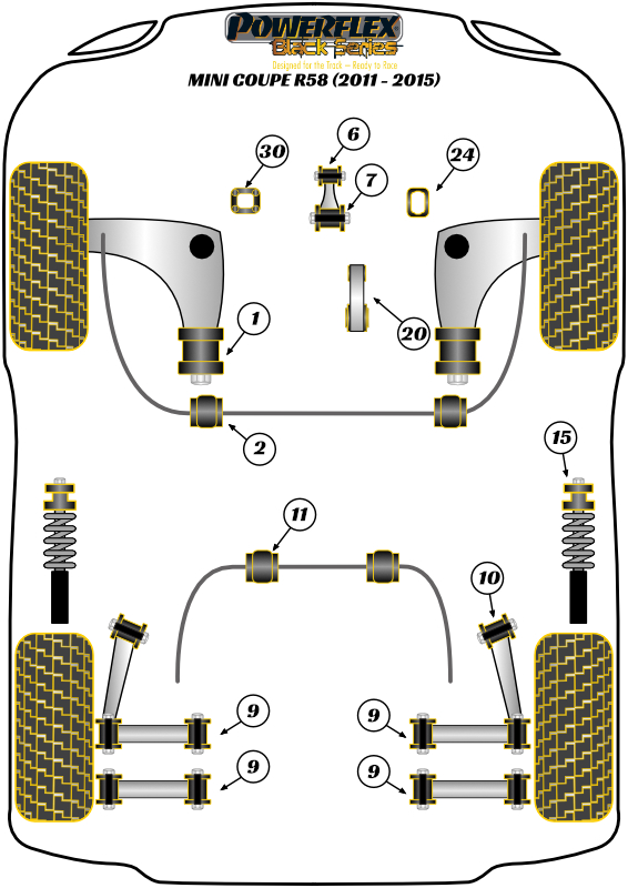 Front Anti Roll Bar Bush 22.5mm Powerflex Polyurethane Bush Black Series Mini R58 Coupe (2011 - 2015) PFF5-102-225BLK