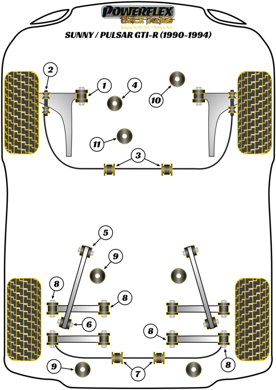 Rear Trailing Arm to Subframe Bush Powerflex Polyurethane Bush Black Series Nissan Pulsar/Sunny GTi-R (1990-1994) PFR46-105BLK