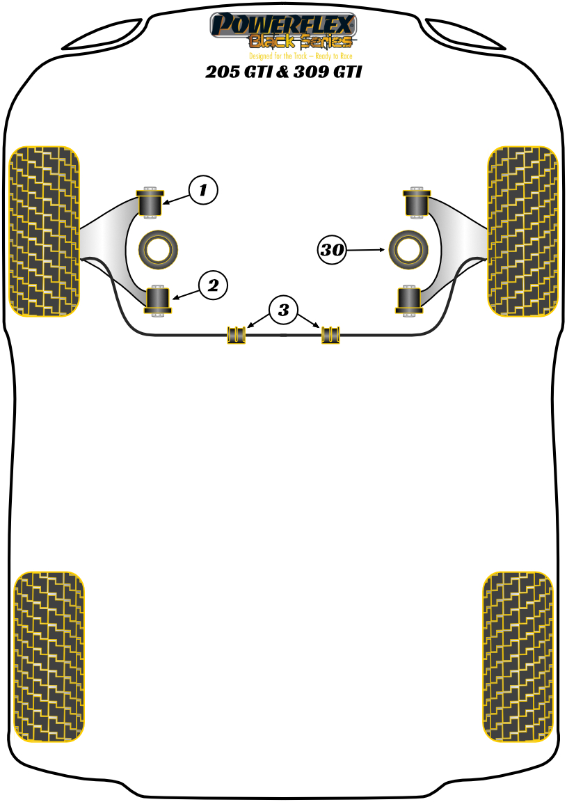 Front Wishbone Rear Bush Powerflex Polyurethane Bush Black Series Peugeot 205 GTi (1985-1998) PFF50-212BLK
