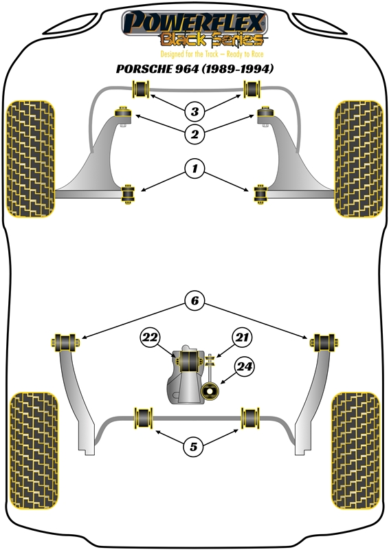 Rear Anti Roll Bar Bush 19mm Powerflex Polyurethane Bush Black Series Porsche 911 964 (1989 - 1994) PFF57-209-19BLK