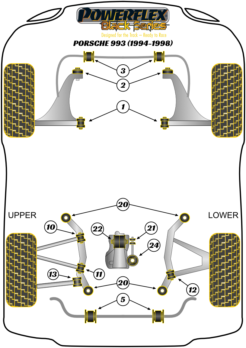 Front Wishbone Rear Bush Powerflex Polyurethane Bush Black Series Porsche 911 993 (1994 - 1998) PFF57-101BLK