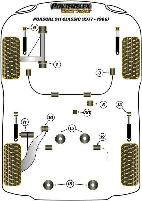 Rear Anti Roll Bar Bush 20mm Powerflex Polyurethane Bush Black Series Porsche 911 Classic (1977 - 1986) PFF57-209-20BLK