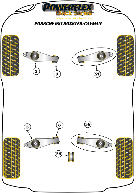 Rear Track Control Arm Inner Bush Powerflex Polyurethane Bush Black Series Porsche 981 Boxster/Cayman (2012 - 2016) PFF57-503BLK