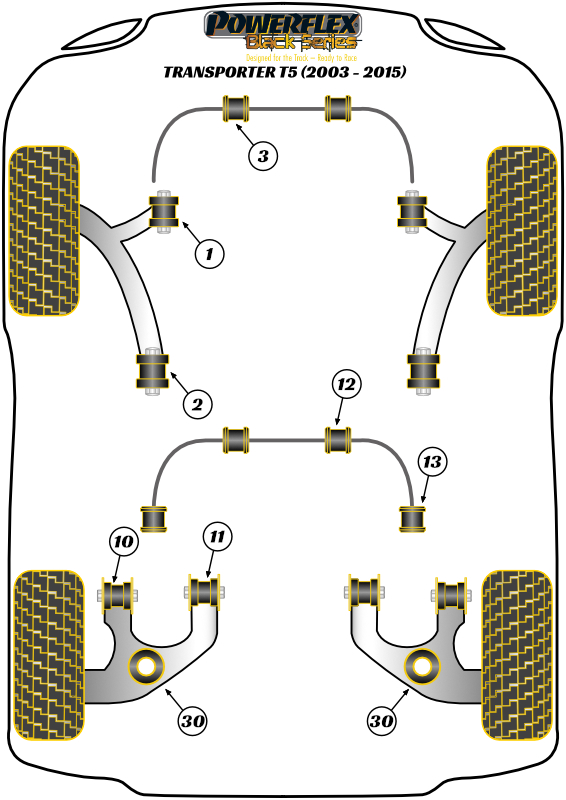 Rear Arm Outer Bush, Adjustable Powerflex Polyurethane Bush Black Series Volkswagen Transporter Models T5 Transporter inc. 4Motion (2003-2015) PFR85-1310GBLK