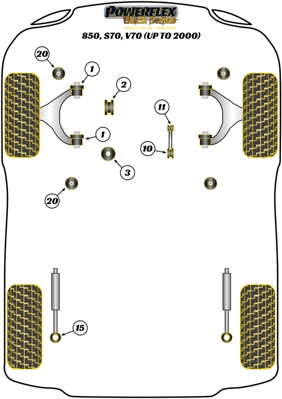 Front Upper Bulkhead Mount 36mm Powerflex Polyurethane Bush Black Series Volvo 850, S70, V70 (1991- 2000) PFF88-107BLK