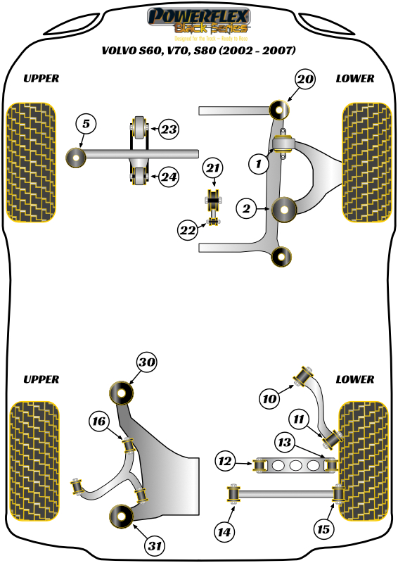 Front Wishbone Front Bush Powerflex Polyurethane Bush Black Series Volvo S60 (2001 - 2009), V70/S80 (1999 - 2007) PFF88-601BLK