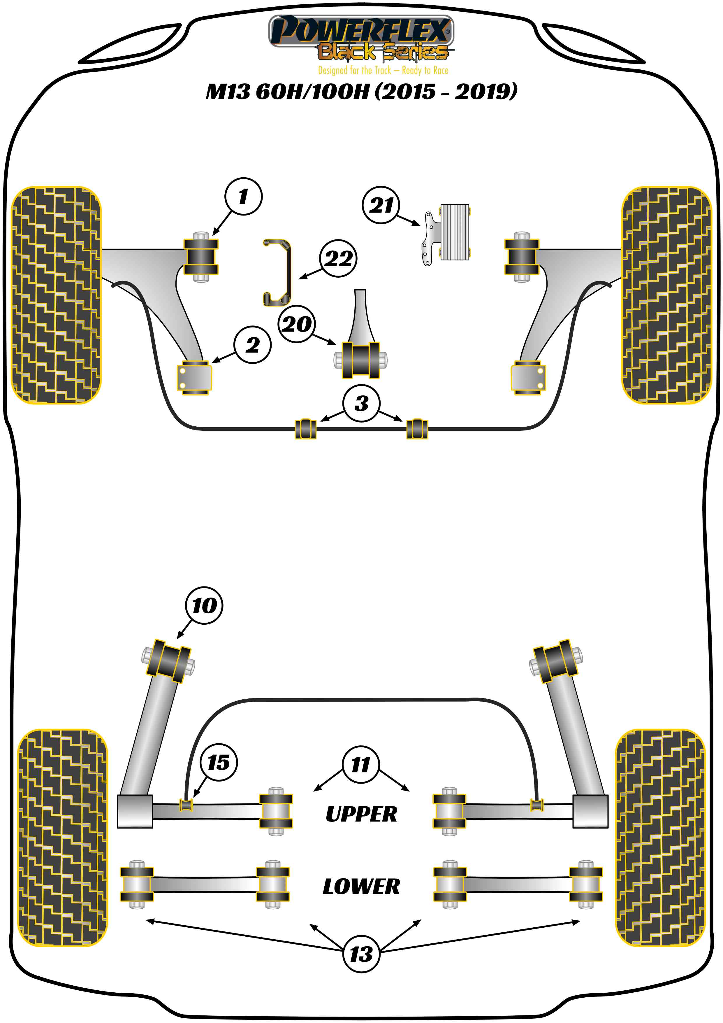 Front Arm Rear Bush Caster Offset Powerflex Polyurethane Bush Black Series Zinoro M13 60H/100H (2015 - 2019) PFF5-1302GBLK