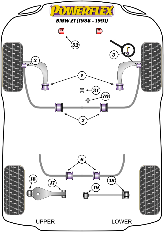 Rear Anti Roll Bar Mounting Bush 14mm Powerflex Polyurethane Bush Road Series BMW Z Series Z1 (1988 - 1991) PFR5-308-14