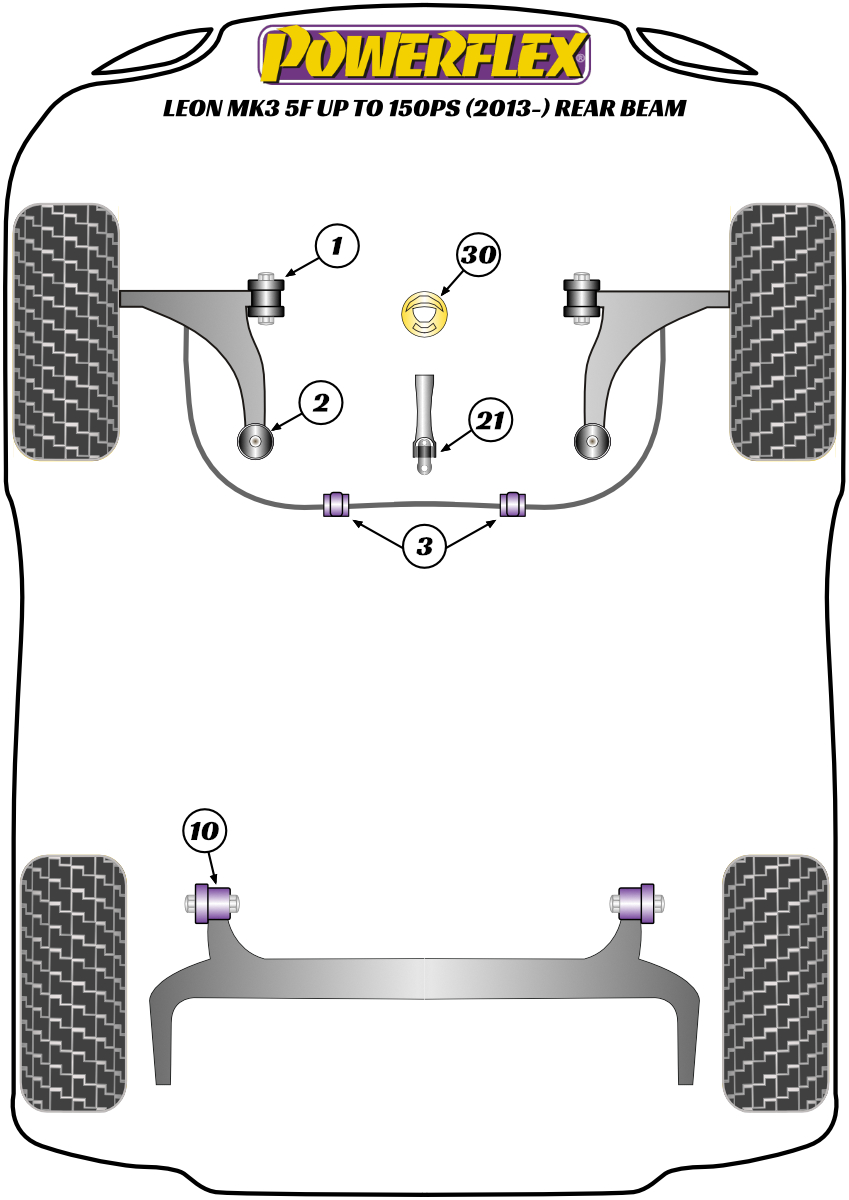 Front Anti Roll Bar Bush 21.7mm Powerflex Polyurethane Bush Road Series Seat Leon Models Leon MK3 5F (2013-2020) Leon MK3 5F upto 150PS (2013-2020) Rear Beam PFF85-803-21.7