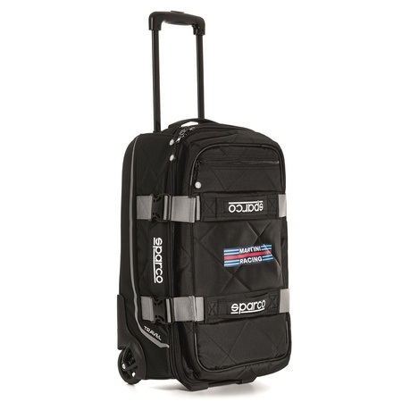 Es verfügt über zahlreiche Taschen, einen verstärkten Boden, Räder und einen klappbaren Griff, einen doppelten Boden und ein gepolstertes Fach.