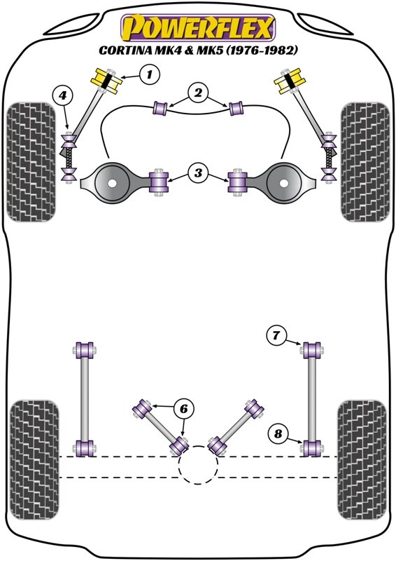 Front Tie Bar Set Powerflex Polyurethane Bush Road Series Ford Cortina Mk4,5 (1976-1982) PFF19-3620
