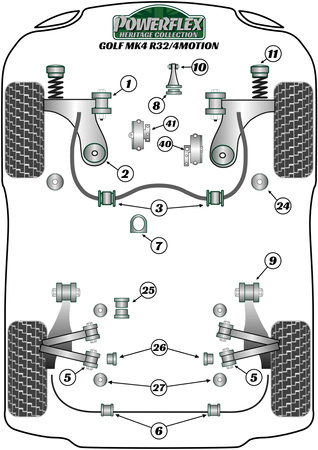 Első motorra szerelhető kutyacsont (dízel) Powerflex poliuretán szilent Heritage Collection Volkswagen Golf Golf MK4 (1997 - 2004) Golf MK4 R32 / 4Motion (1997-2004) PFF85-420RH