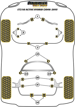 Hátsó alsó kar első persely Powerflex poliuretán szilent Black Series BMW X Series X6 Series X6 E72 ActiveHybrid (2008 - 2011) PFR5-710-16BLK