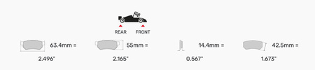 Ferodo Racing oferuje jedną z najszerszych gam kształtów klocków hamulcowych na rynku klocków wyścigowych i wyczynowych. Ten zakres dopasowania jest dostępny z kilkoma mieszankami, których wybór zależy od zastosowania i preferencji kierowcy. Każda mieszanka jest identyfikowana za pomocą określonego przyrostka, np. mieszanka DS2500-> przyrostek: H. Obecność litery "B" w przyrostku (np. GB) wskazuje, że zestaw klocków został poddany wygrzewaniu w wysokiej temperaturze w procesie produkcyjnym, aby znacznie szybciej się ułożył.
