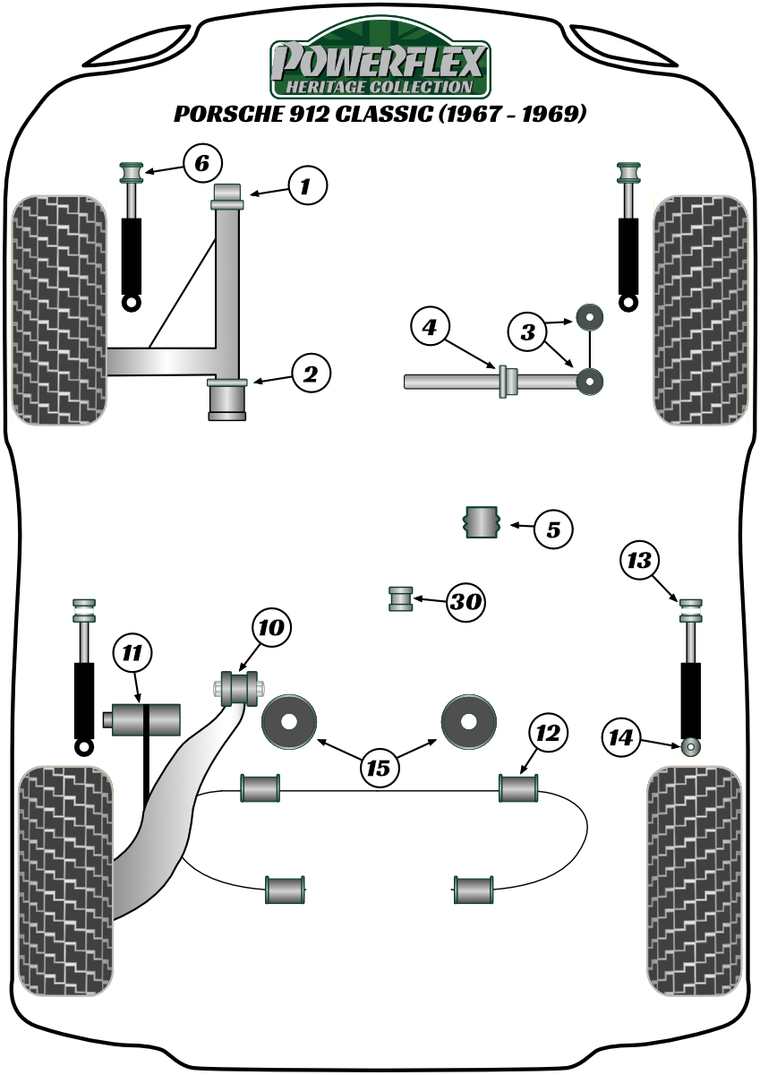 Tuleja sprzęgła drążka zmiany biegów Powerflex Heritage Collection Porsche 912 (1967-1969) PFR57-430H