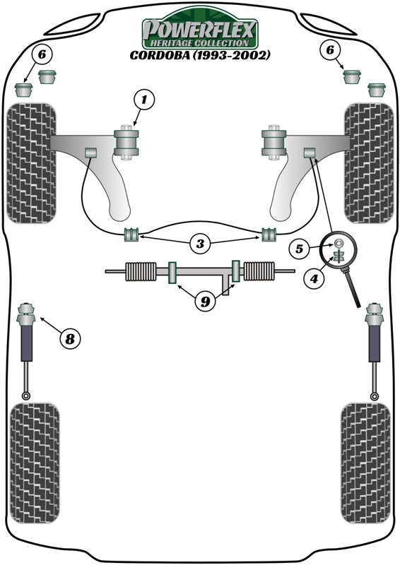Tulejki przedniego oczkowego łącznika stabilizatora 10mm Powerflex Heritage Collection Seat Cordoba Models & Cordoba MK1 6K (1993-2002) PFF85-208-10H