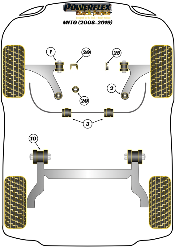 Tuleja stabilizatora przedniego 16,4mm Powerflex Black Series Alfa Romeo MiTo (2008-2018) PFF80-1103-16.4BLK