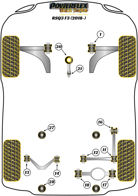 Przednia tuleja mocowania tylnej ramy pomocniczej Powerflex Black Series Audi Q3 / RSQ3 & Q3/RSQ3 F3 (2018 on)\RSQ3 F3 PFR85-827BLK