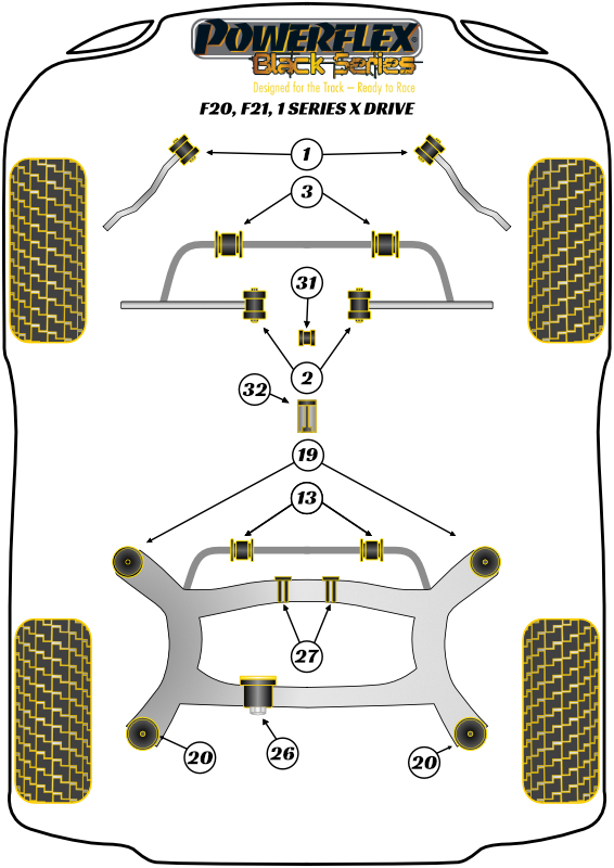 Tylna tuleja drążka zmiany biegów Powerflex Black Series BMW 1 Series & F20, F21 xDrive (2011 - 2019) PFF5-4632BLK