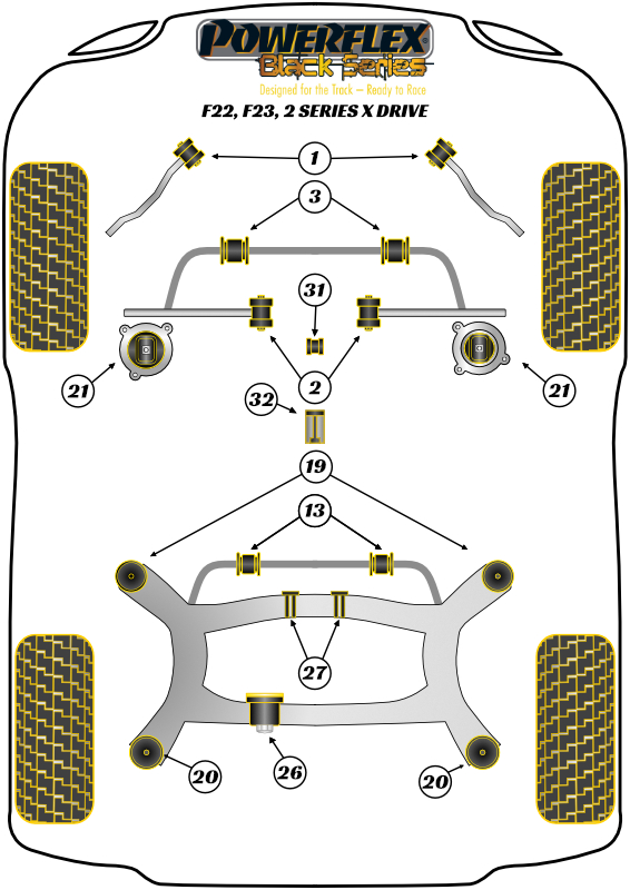 Przednia tuleja ramienia zmiany biegów (owalna) Powerflex Black Series BMW 2 Series & F22, F23 xDrive (2013 - 2021) PFF5-4631BLK