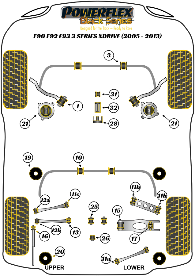 Przednia tuleja drążka zmiany biegów - Ultra owalna Powerflex Black Series BMW 3 Series & E90, E91, E92 & E93 (2005-2013)\E9* xDrive PFF5-4634BLK