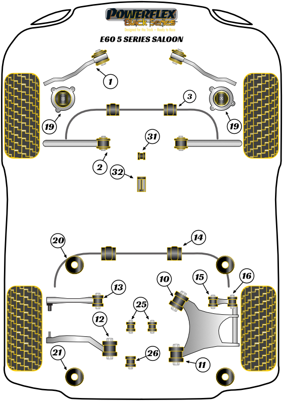 Tylna tuleja drążka stabilizatora 16mm Powerflex Black Series BMW 5 Series & E60, E61 (2003-2010)\E60 Saloon PFR5-4609-16BLK