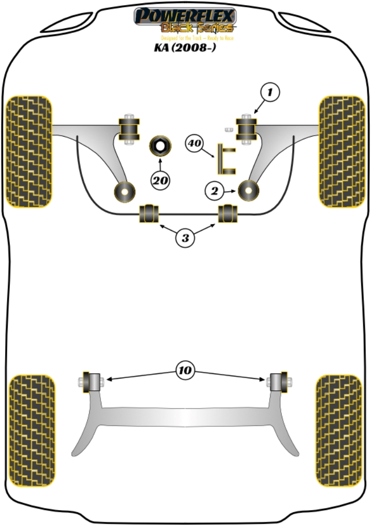 Przednia tuleja przedniego wahacza, regulowane pochylenie Powerflex Black Series Ford KA Models & KA (2008 - 2016) PFF16-501GBLK