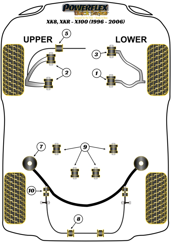 Przednia tuleja przedniego wahacza Powerflex Black Series Jaguar (Daimler) XK8, XKR - X100 (1996 - 2006) PFF27-203BLK