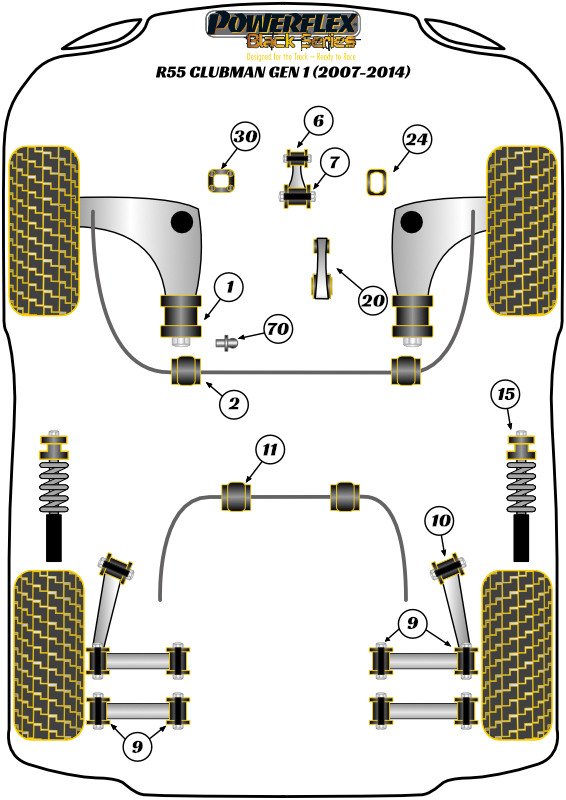 Tuleja stabilizatora przód 24mm Powerflex Black Series Mini R55 Clubman Gen 1 (2007 - 2014) PFF5-102-24BLK