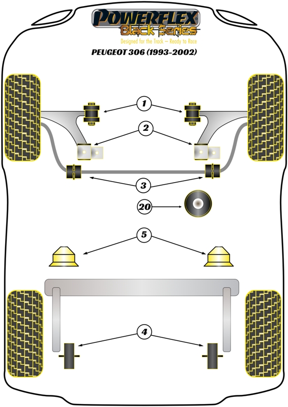 Tylna tuleja przedniego wahacza Anti-Lift & stałe pochylenie Powerflex Black Series Peugeot 306 (1993-2002) PFF50-302BLK