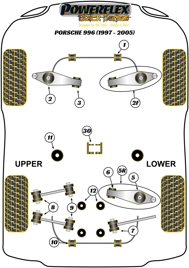 Wewnętrzna tuleja tylnego wahacza łączącego Powerflex Black Series Porsche 911 996 (1997-2005) PFR57-507BLK