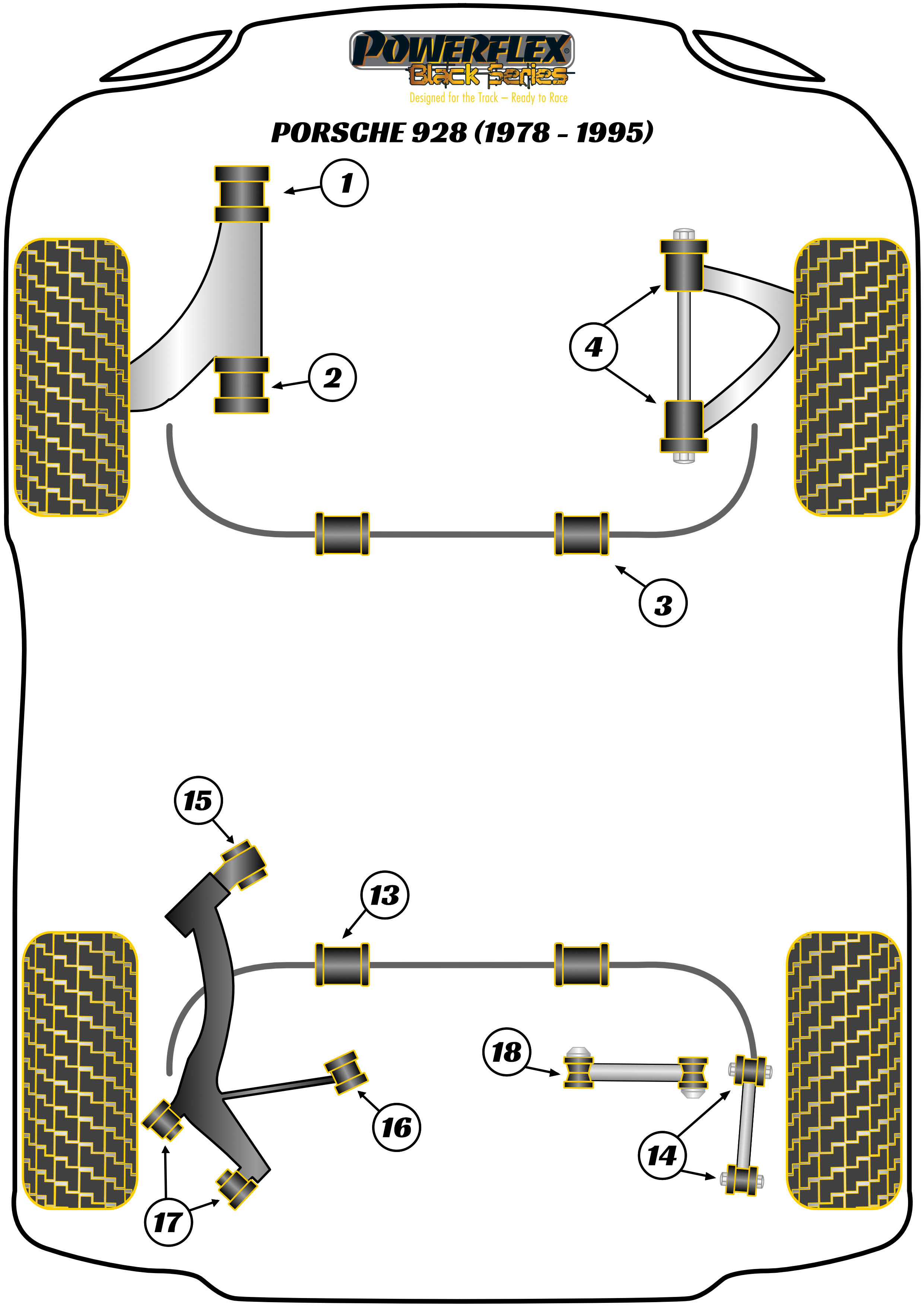 Zewnętrzna tuleja dolnego wahacza tylnego zawieszenia Powerflex Black Series Porsche 928 (1978-1995) PFR57-717BLK