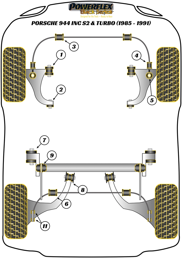 Tuleja stabilizatora przód 26.8mm Powerflex Black Series Porsche 944 inc S2 & Turbo (1985 - 1991) PFF57-204-26.8BLK